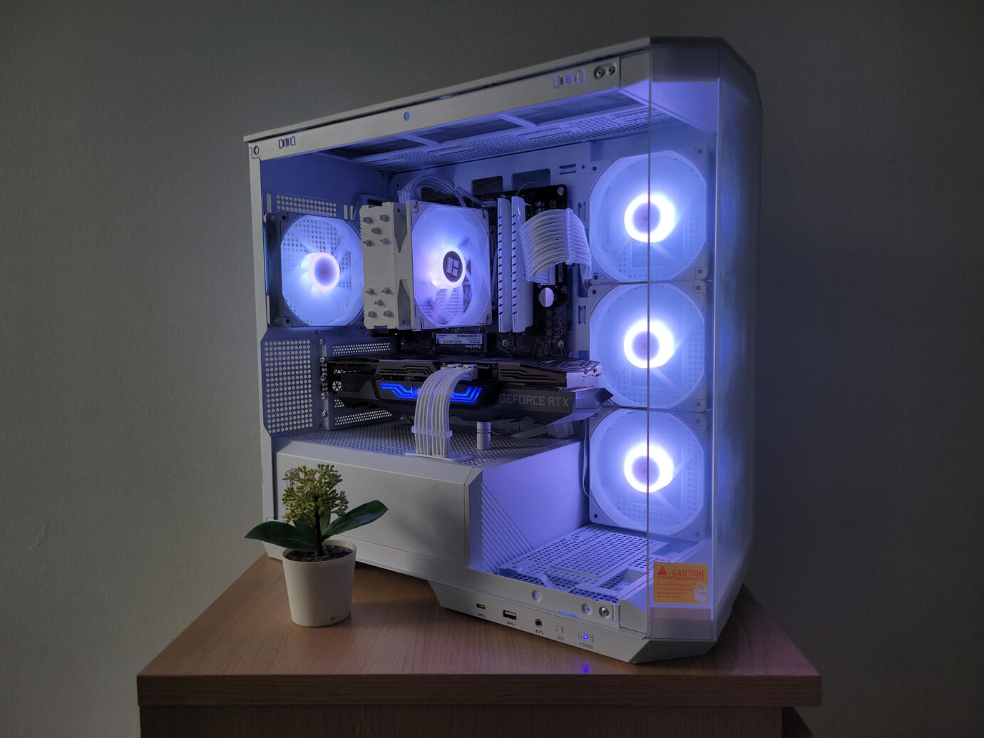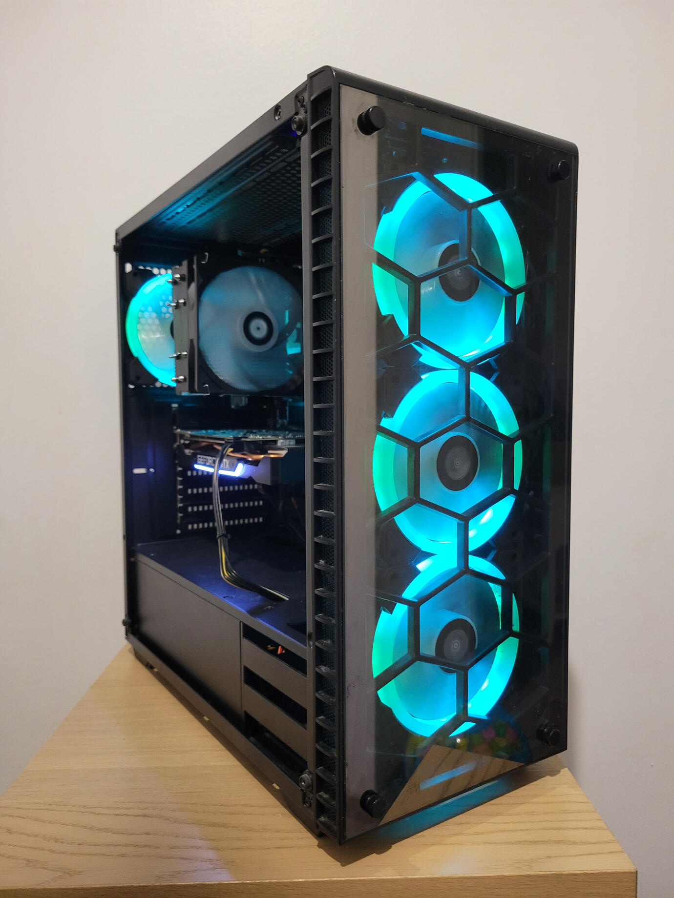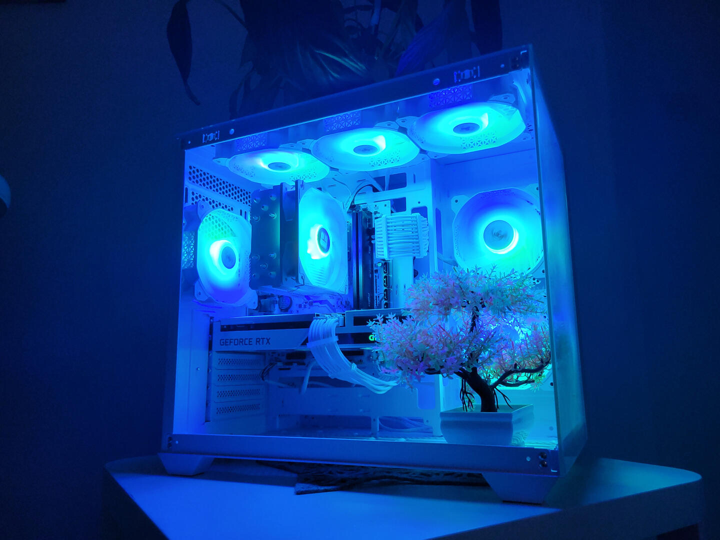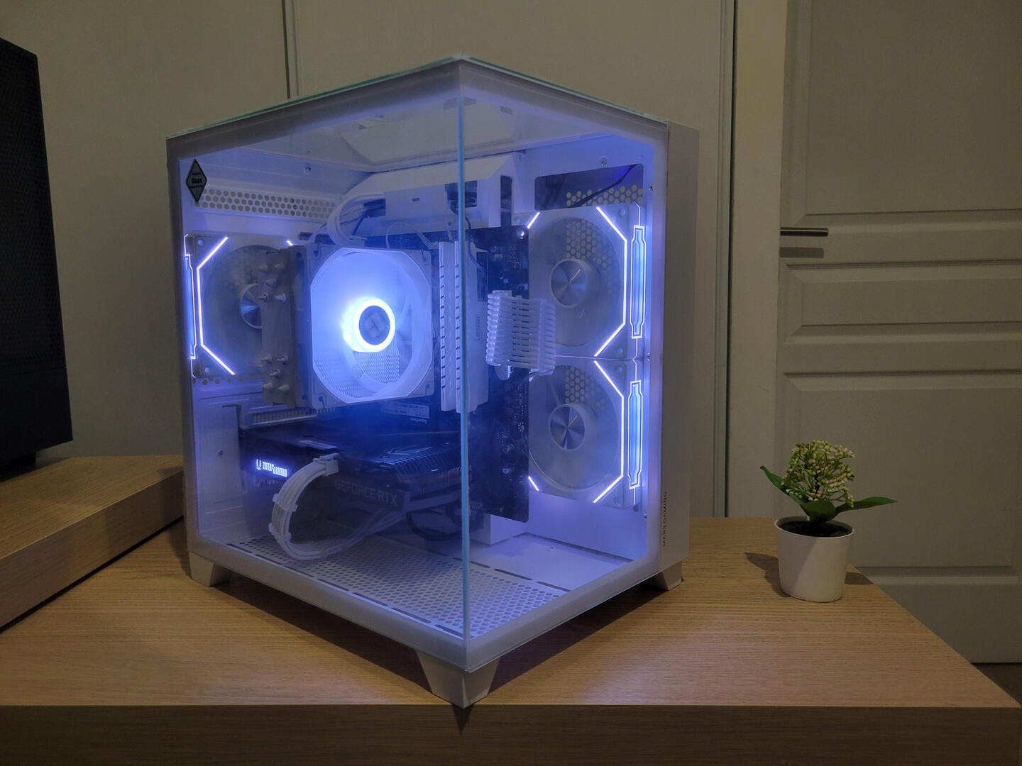 Le PC est parfaitement neuf (le GPU est légèrement utilisé), le RGB est adressable via des logiciels sur l'ordi et via un bouton LED sur le côté du boîtier, et tous les composants sont synchronisés entre eux, donc pas besoin de configurer chaque composant ! Tout est absolument neuf, les plastiques de protection sont encore présents sur le boîtier.